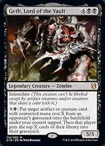 Geth, Lord of the Vaults is the sencond most powerful creature we suggest running in your Reanimator deck or sideboard. He is a mythic rare Legendary Zombie with 5 power and 5 toughness. With a cost of 4 colorless mana and 2 swamps, Geth is semi-expensive but well worth it.